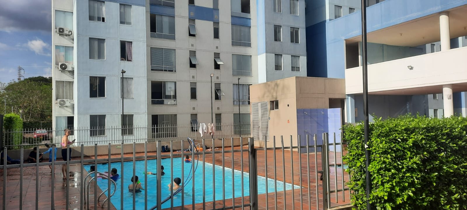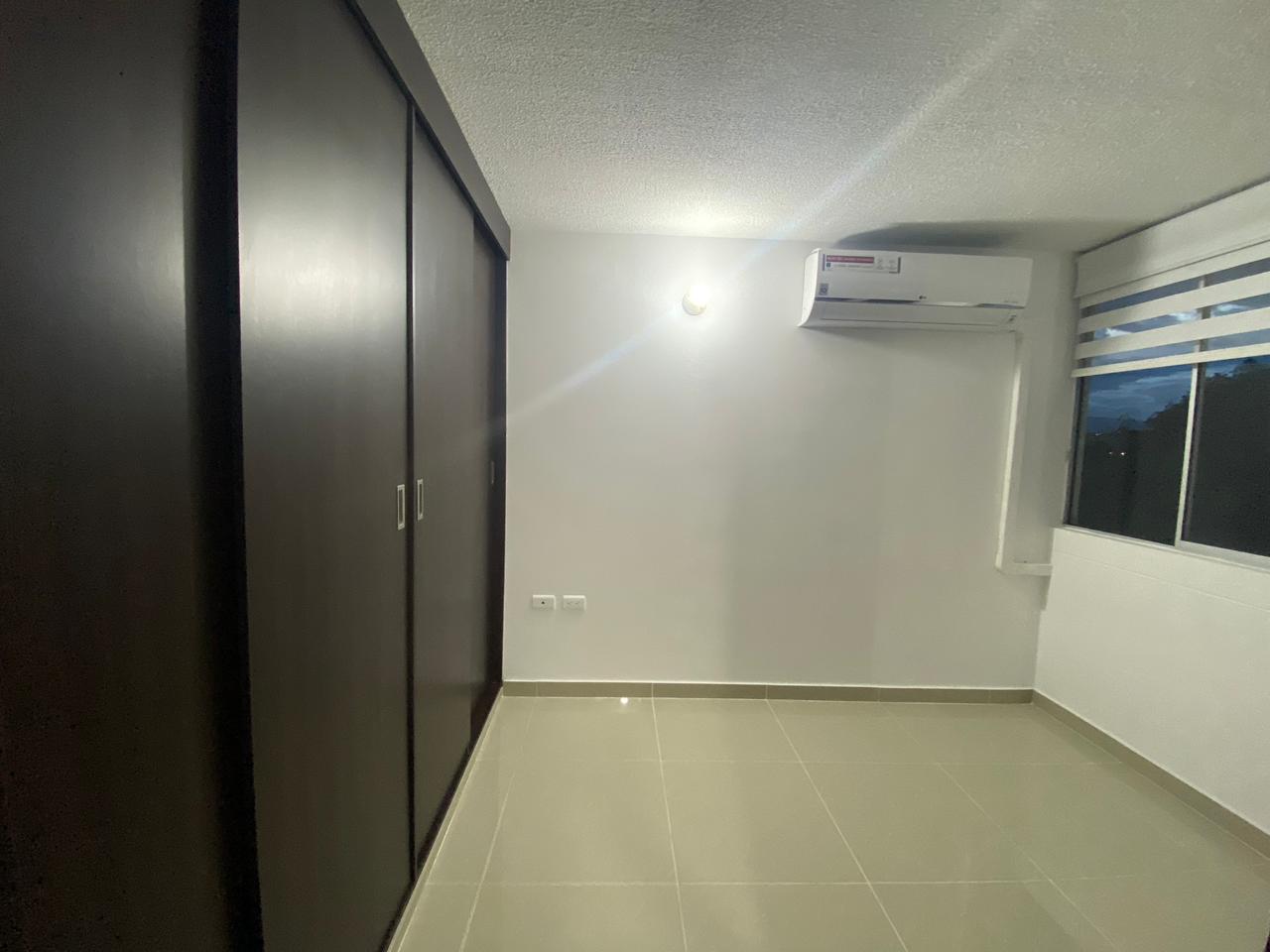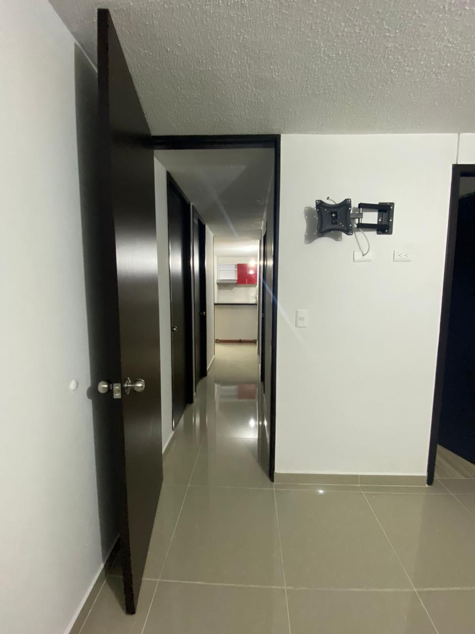 El apartamento consta de piso en porcelanato, 2 baños con división en vidrio, 3 habitaciones con closet y la principal con aire acondicionado y baño privado, sala comedor con mesón, cocina integral con gas natural   y zona de ropas, parqueadero comunal  para  carro y moto, piscina para adultos y niños.