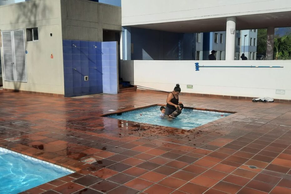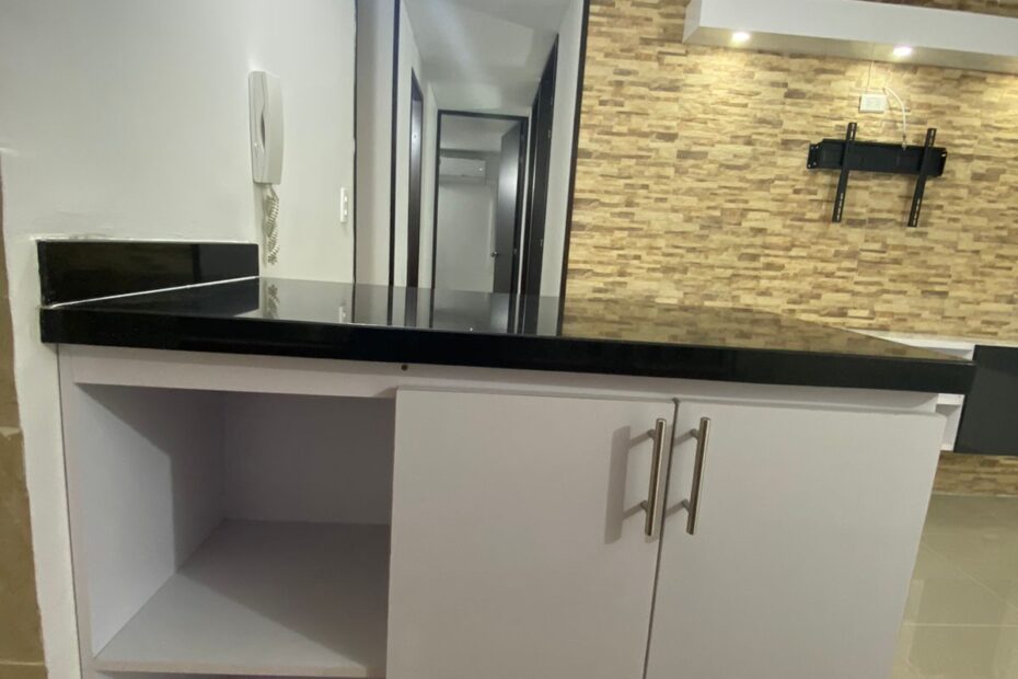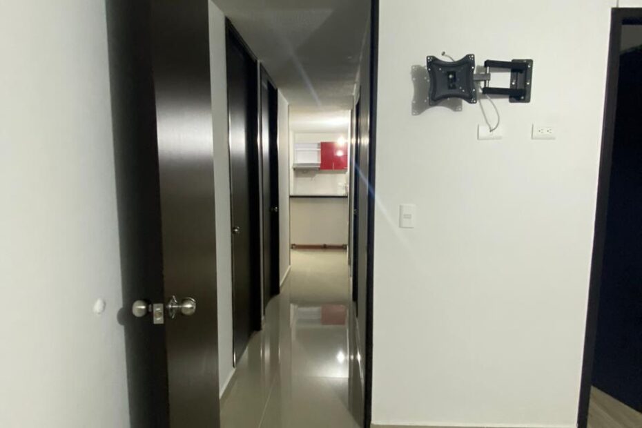 El apartamento consta de piso en porcelanato, 2 baños con división en vidrio, 3 habitaciones con closet y la principal con aire acondicionado y baño privado, sala comedor con mesón, cocina integral con gas natural y zona de ropas, parqueadero comunal para carro y moto, piscina para adultos y niños.
