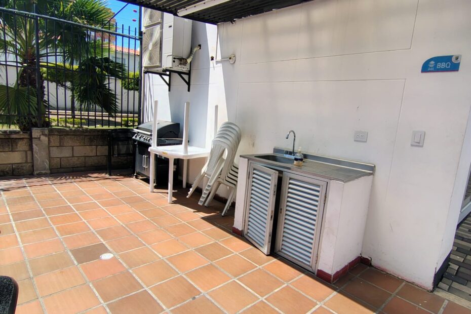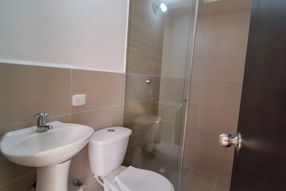 consta de: sala comedor, cocina integral, patio de ropas, 3 habitaciones con closets y puntos de aires la principal con baño privado, estudio, baño social, parqueadero privado cubierto, zona social, piscina para adultos y niños, parque bio saludable, cancha mixta, y salón social