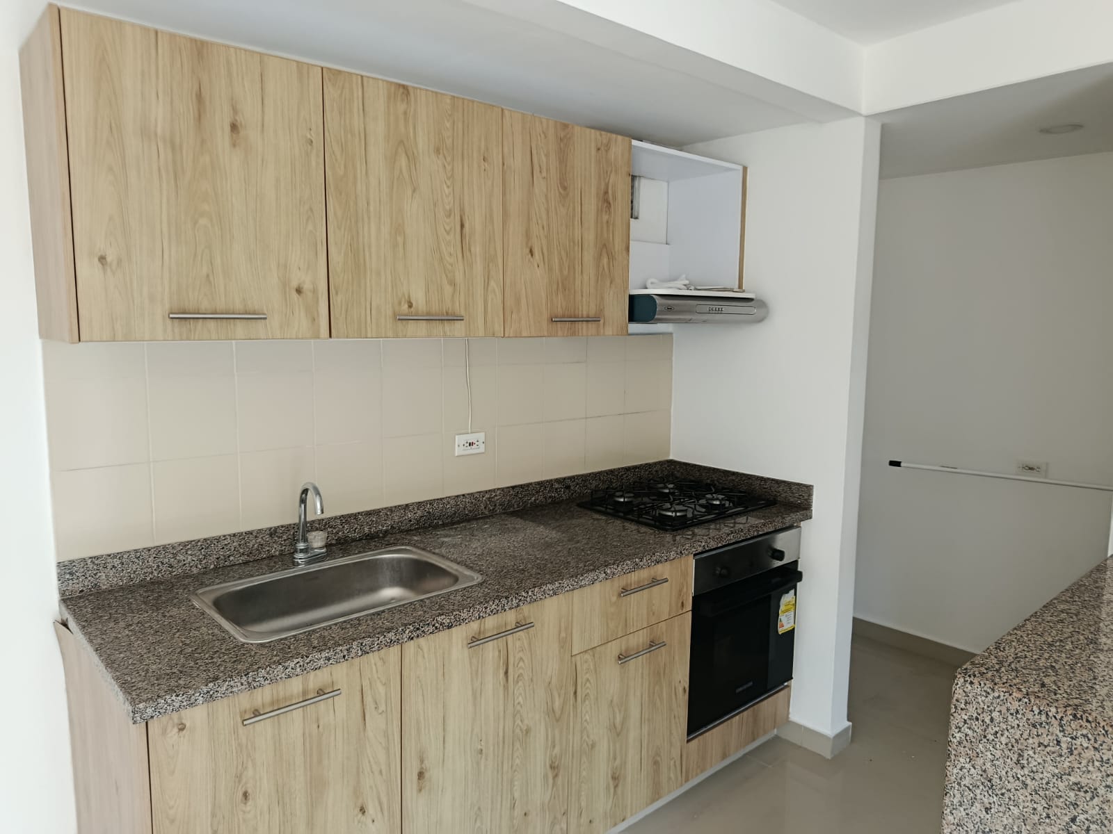 CONSTA DE: sala comedor con balcón, cocina integral con horno y campana extractora, gas natural, mesón en mármol, 2 habitaciones con closet la principal con aire acondicionado y un baño auxiliar.