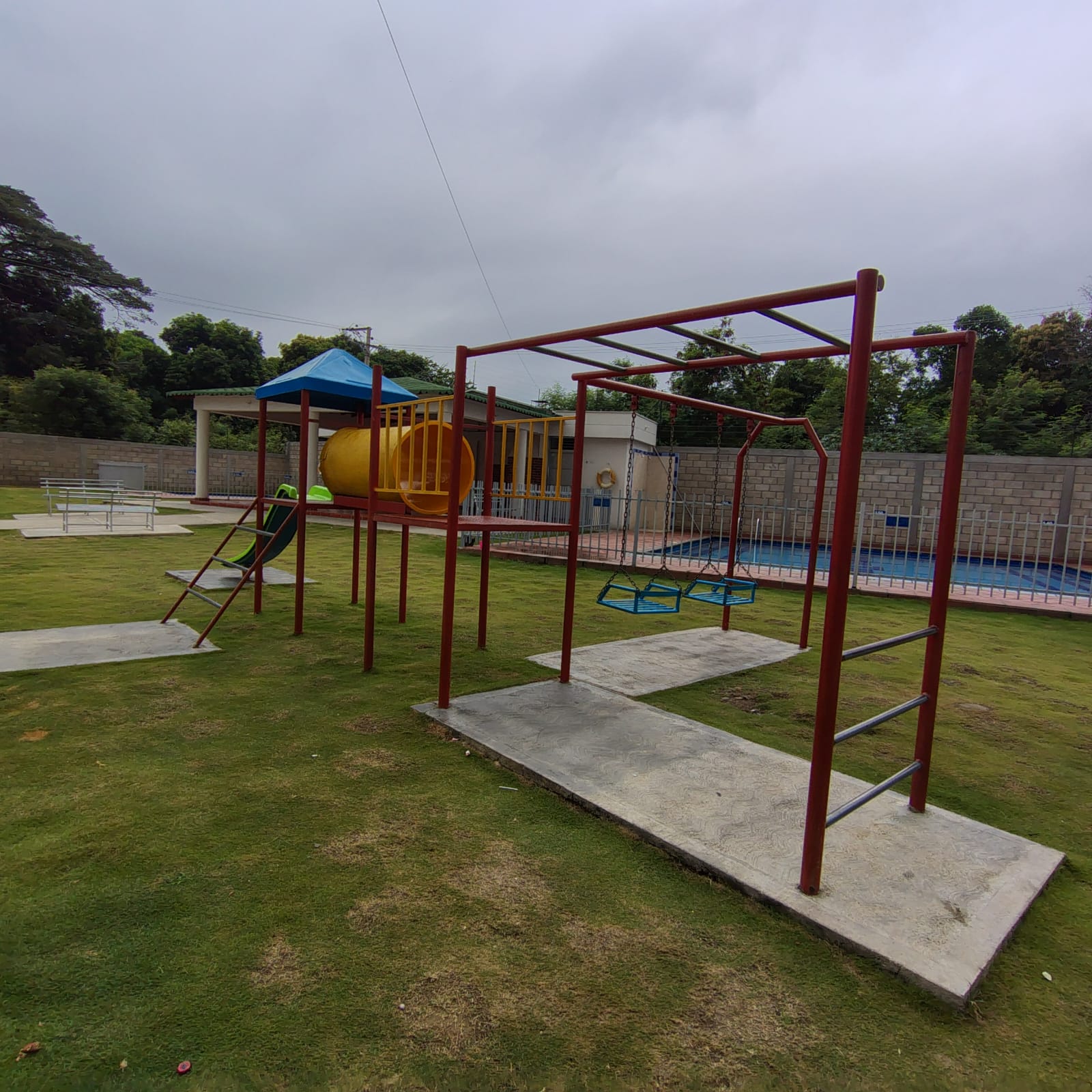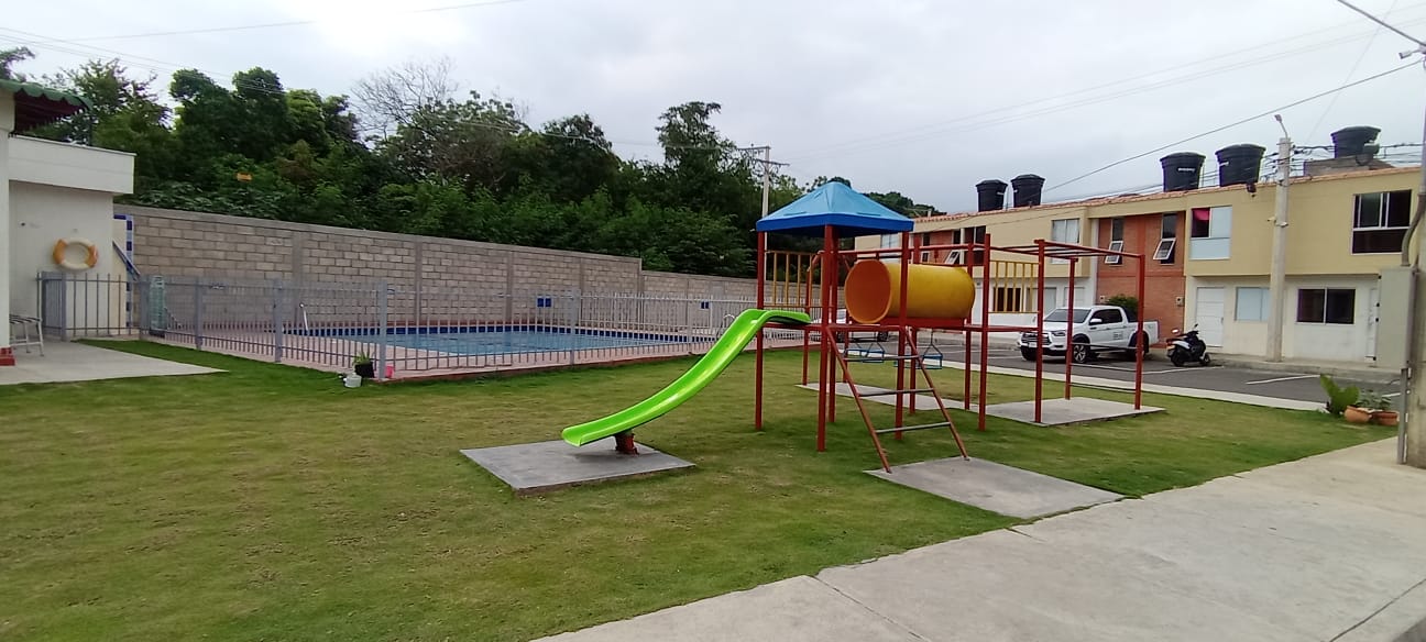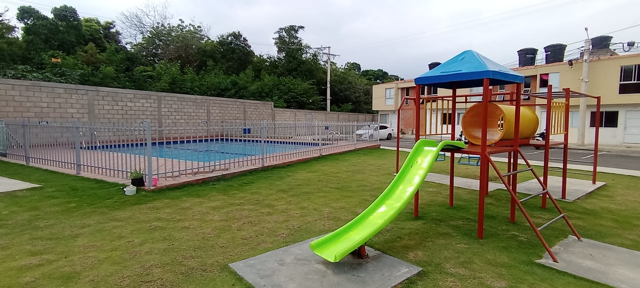zona social con piscina para niños y adultos, salón social, juegos infantiles